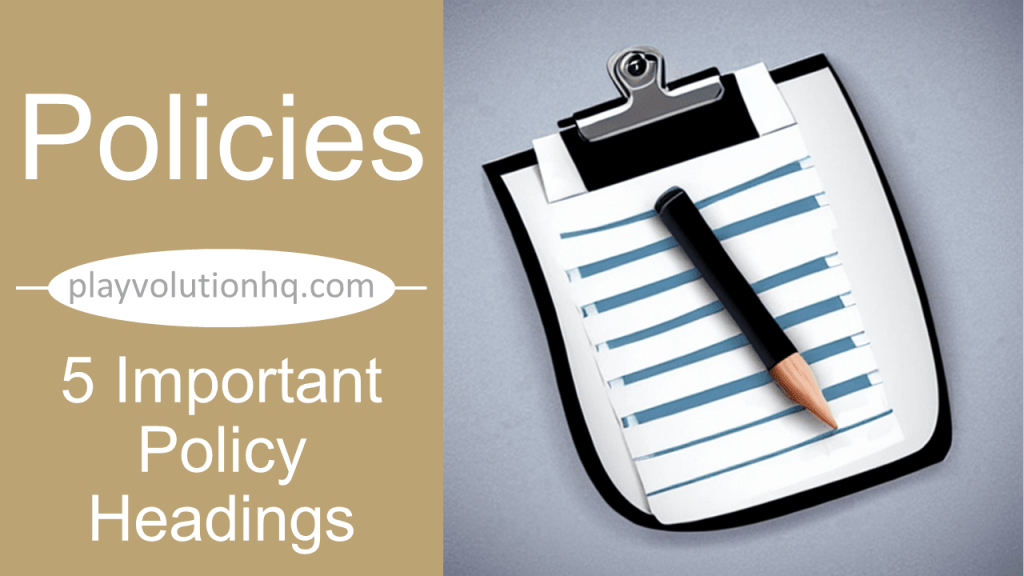 Tracking, the last of our policy headings, deals with document control. This policy heading aims to give your policy a unique identity and document when it went into effect, who approved it, and its history of revisions. This information isn’t important until it is very important. Imagine a child breaking her left arm on your playground. A few weeks later, a letter from a lawyer’s office shows up explaining that the child’s family is suing, claiming lack of supervision and professional negligence.