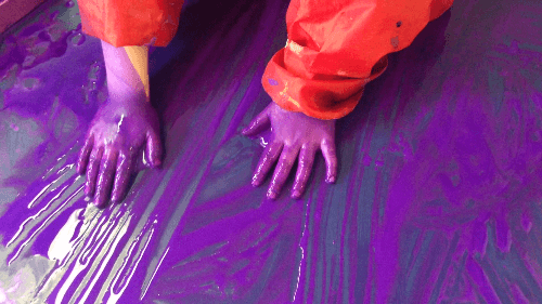 Due to familiarity bias, we adults tend to lose the enjoyment of simple sensory experiences kids find fascinating. To us, the sensation of slippery, cool purple paint slathered all over your hands isn’t as new and enticing,