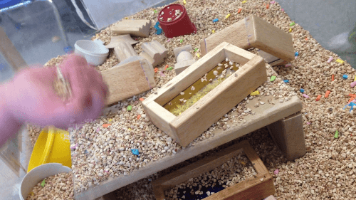 Whether it’s finger painting with bright colors or splashing milk from one container to another at lunchtime, they’re experimenting and learning about textures, cause and effect, and how objects interact. For example, toddlers might mix dirt with water, discovering something new and exciting: they invented mud.