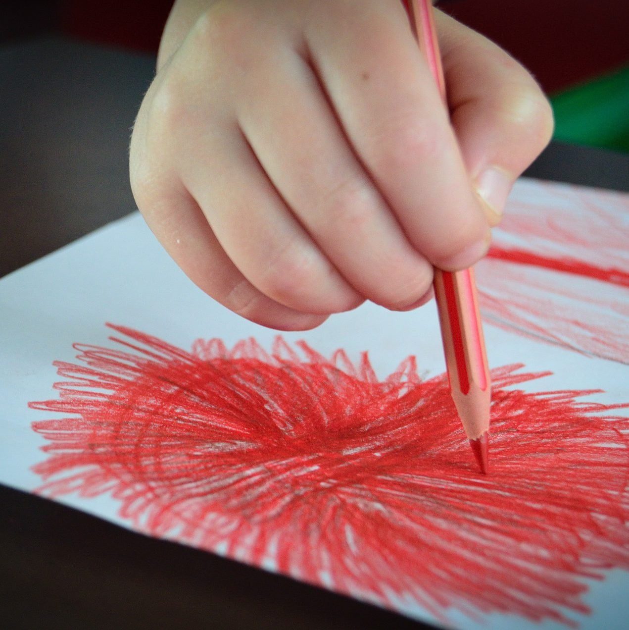 …as is back and forth or up and down mark making with pens, paintbrushes, chalk, markers, and crayons.