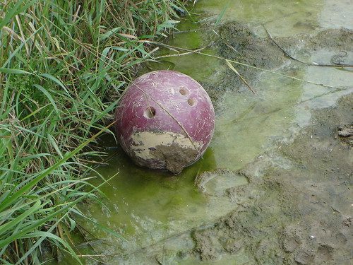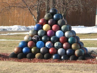 Bowling balls are loose parts that will delight children. Growing up, my younger brother had three of them–not sure where they came from. He’d roll them around, try to throw them, smash stuff with them, carry them, etc. Then one day he dug a hole and buried them. That was the end of his bowling ball play, because months later when he went to dig them up, he couldn’t remember where they were buried. Poor kid.