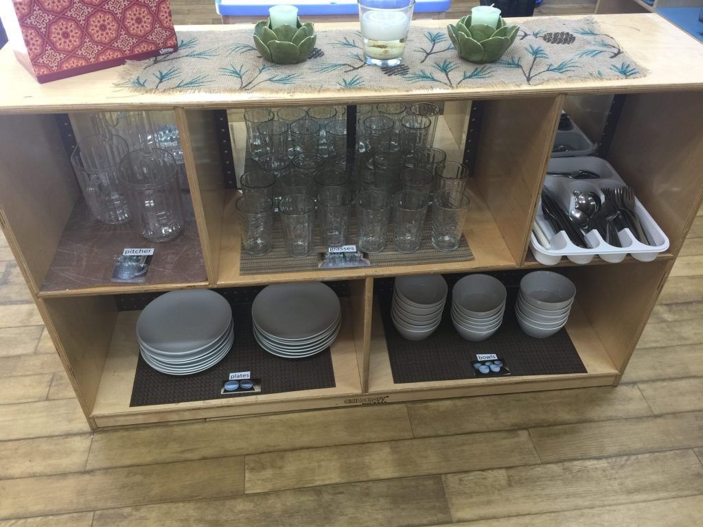 Notice that the breakable items are utilitarian, inexpensive, and durable. That’s a smart call. I don’t recommend displaying collections of neolithic pottery or Ming dynasty vases in children’s play spaces. Be thoughtful about what breakable stuff you provide.