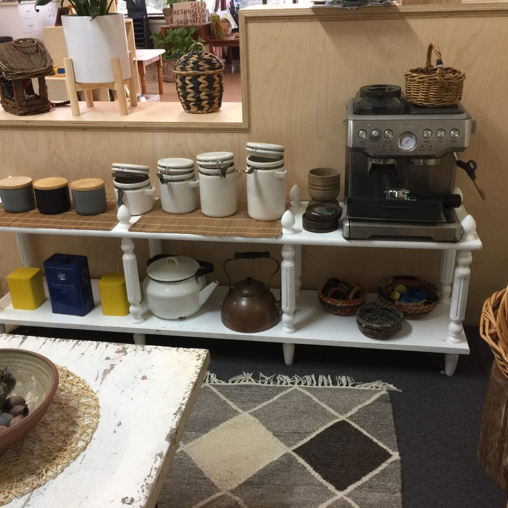 A bounty of breakable stuff: pitchers, glasses, plates, bowls, candle holders, and containers. Plus, look at all those pointy forks and knives!