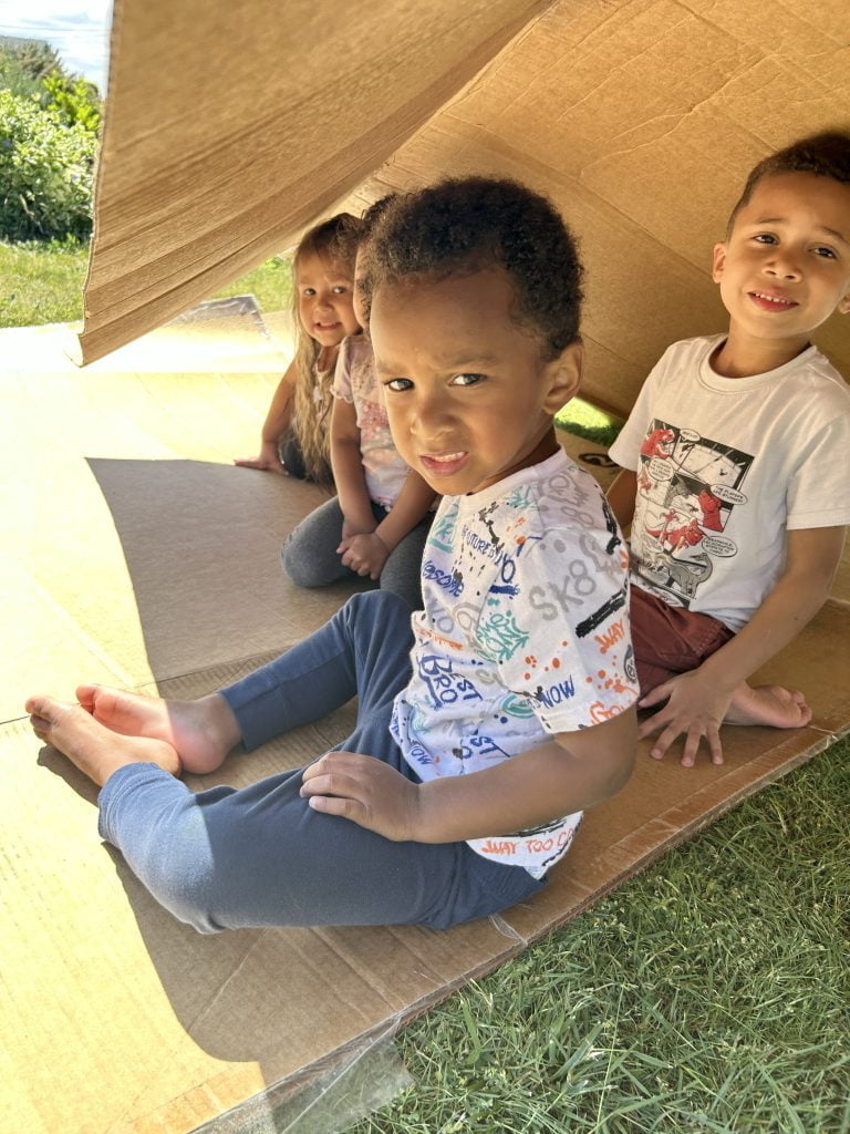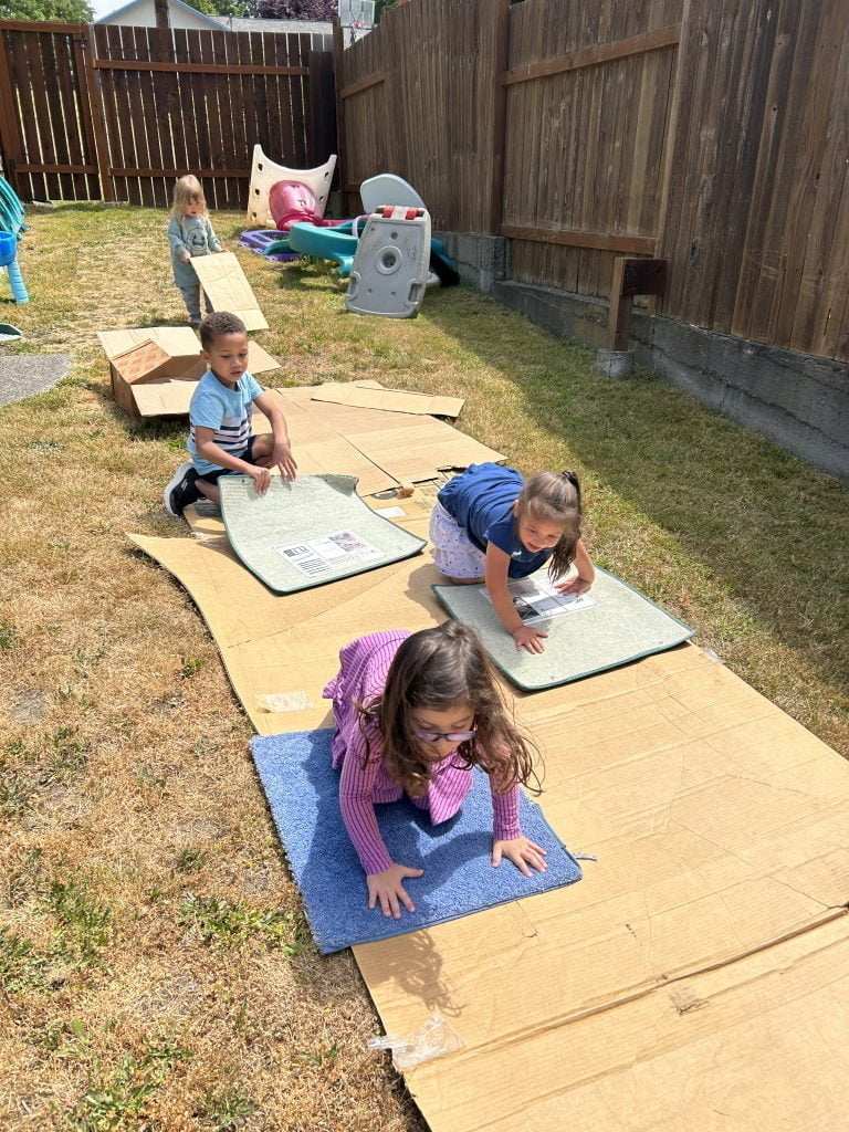 Loose parts like Autumn’s cardboard sheets are environmental variables that kids can use in creating their own play narratives. Such experiences are rich and dynamic opportunities for kids to challenge themselves, hone skills, and have a bit of fun. The kids in Autumn’s program are lucky to have such opportunities; too many children do not.