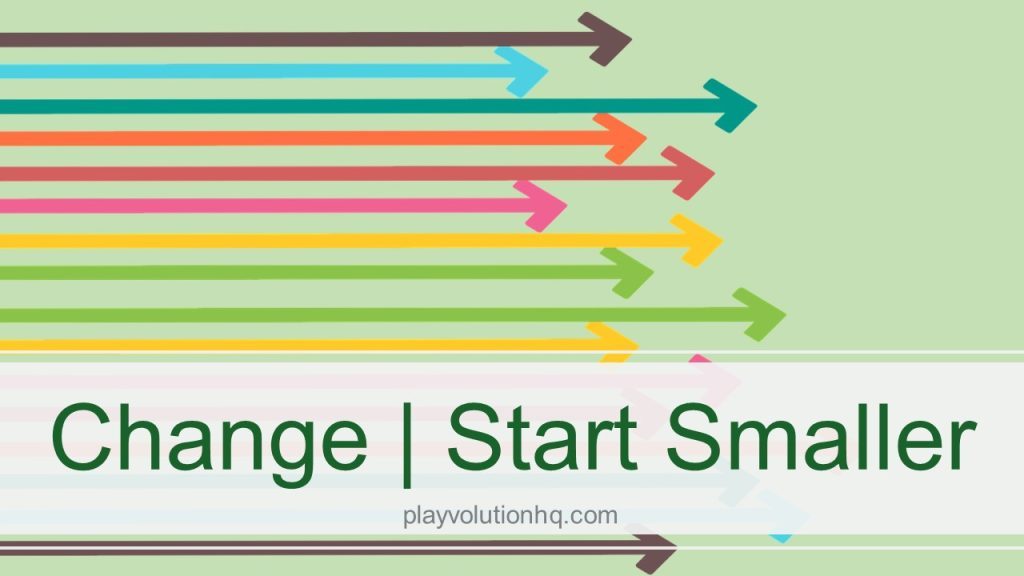 I’ve used the start smaller strategy to make other changes with similar success. It’s helpful if you’re looking at changing up how you do things in your personal life, but it can come in handy when making changes in your early learning setting as well. For example, if you want to create an always-open-for-business mud kitchen in your outdoor play space, you may be more successful if you start small and ease into it. Maybe with small-scale mud play a couple times a week.