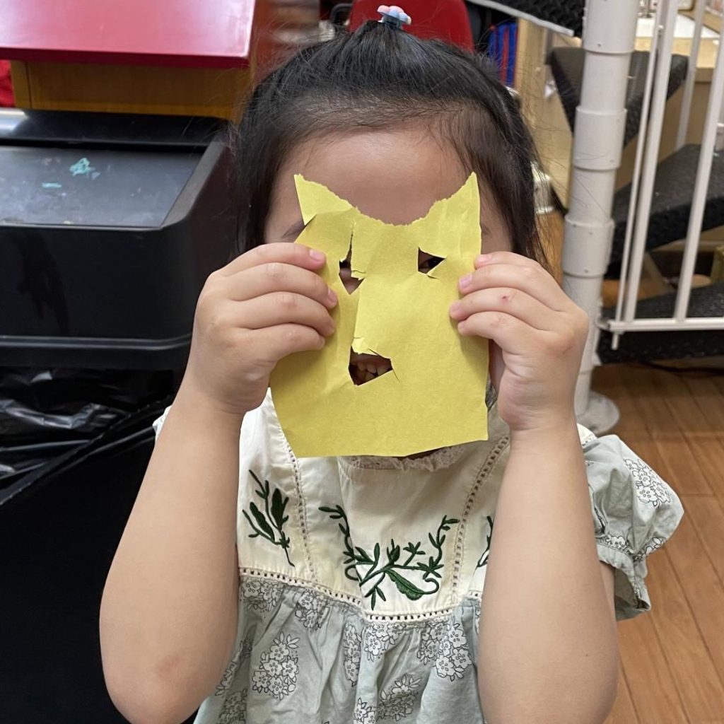 “One child arrived after being out for 2 weeks and immediately noticed that the shelf was different. She asked me, “What do I do with this?” “Whatever you want”, I responded. “Like what?” she asked. To which I prompted, “Well, you can fold it, cut it, draw on it.” She quickly says, “Ooh, can I have scissors to cut it?” (Side note: We are not allowed to have scissors accessible to children. This is the rule at the center I work at, not my personal preference. I’d rather have them out, but that’s another conversation!)As the children began to arrive they joined the table. They used paper, scissors, glue sticks and out come the paint and brushes!”