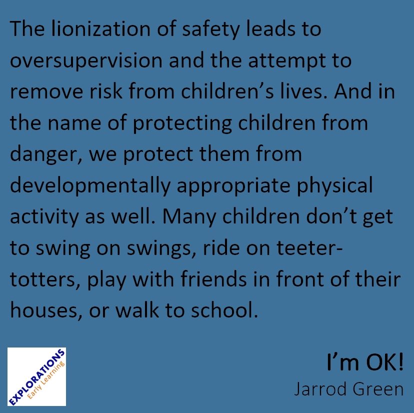 Making things less dangerous is part of keeping early learning settings safe. Caregivers must be vigilant about assessing realistic potential dangers, while spending less time on the highly unlikely scenarios.