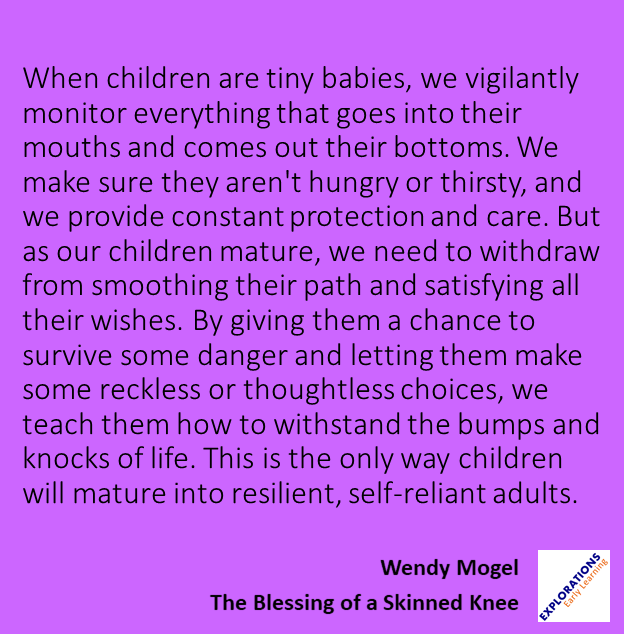 Seeing everything as a DANGER–and not honestly evaluating its likelihood of occurring or the likely outcome if it did occur–hinders developmentally appropriate activity. In these situations, beneficial activities like the ones mentioned above get banned. And that in itself is a danger because children’s developmental needs are stinted.