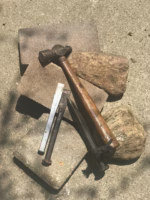 - A mason’s chisel—like this or like this. I’m an old guy with lots of old chisels I’ve inherited from older guys–they would work fine. What the chisels at the links offer that my old guy chisels do not is built in hand protection, which is a nice feature for kids who may not have a lot of experience hitting a chisel without hitting their hand.