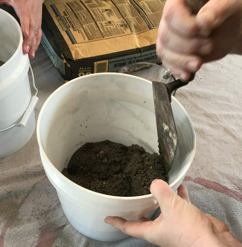 Mix up some concrete according to the instructions on the bag. You want a firm-ish mix. Don’t make it too soupy.