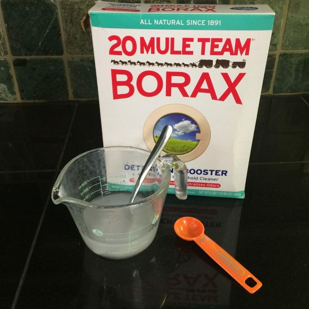 2 teaspoons of Borax and 1/2 cup warm water (the warmer the better, but not HOT) in a measuring cup to dissolve the Borax.