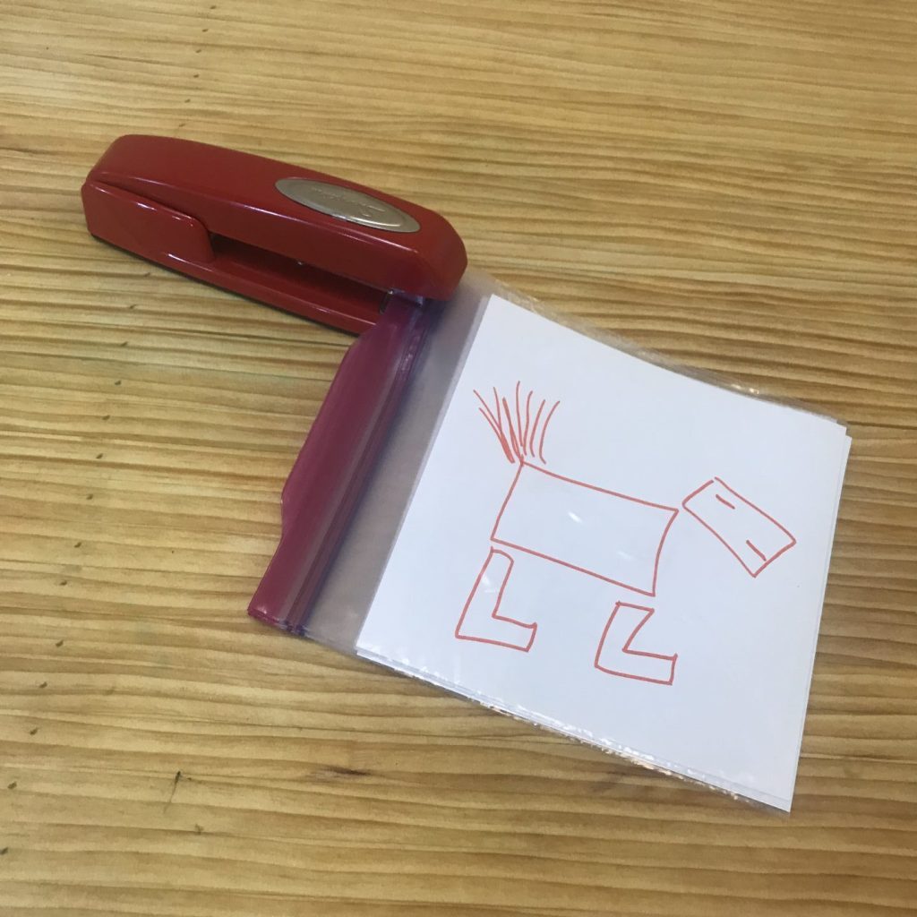 Now it’s time to bind your pages together. Just line up the ends of the freezer bags and staple them together. Double check to make sure they are in the correct order before stapling.