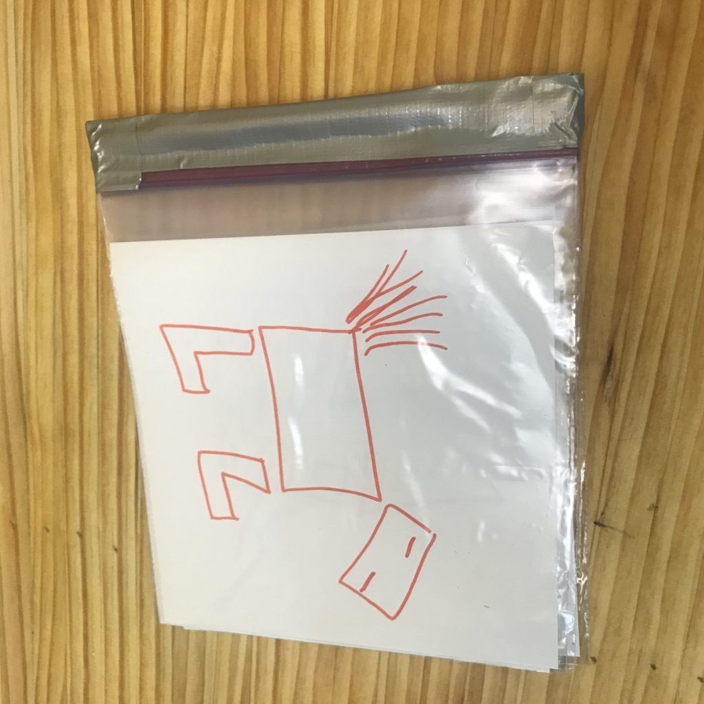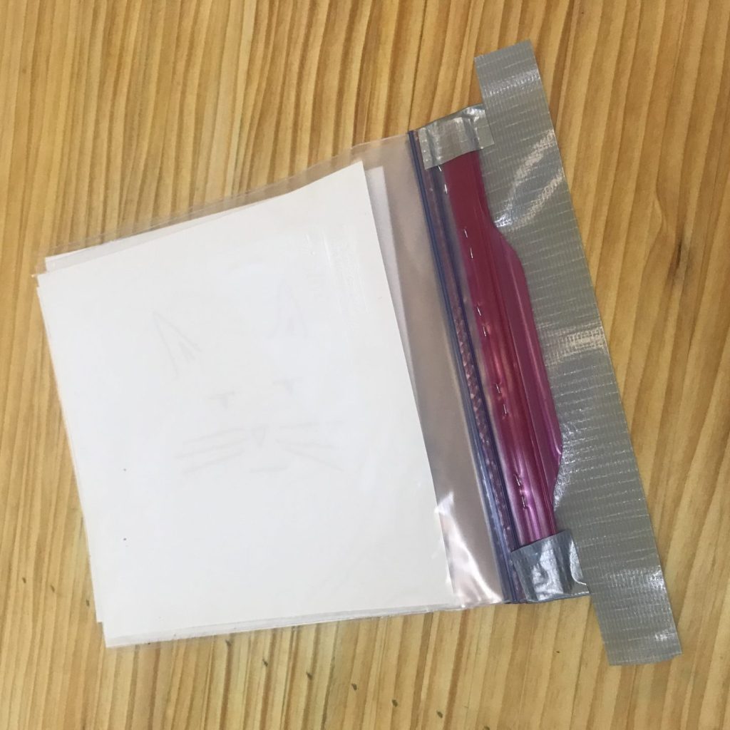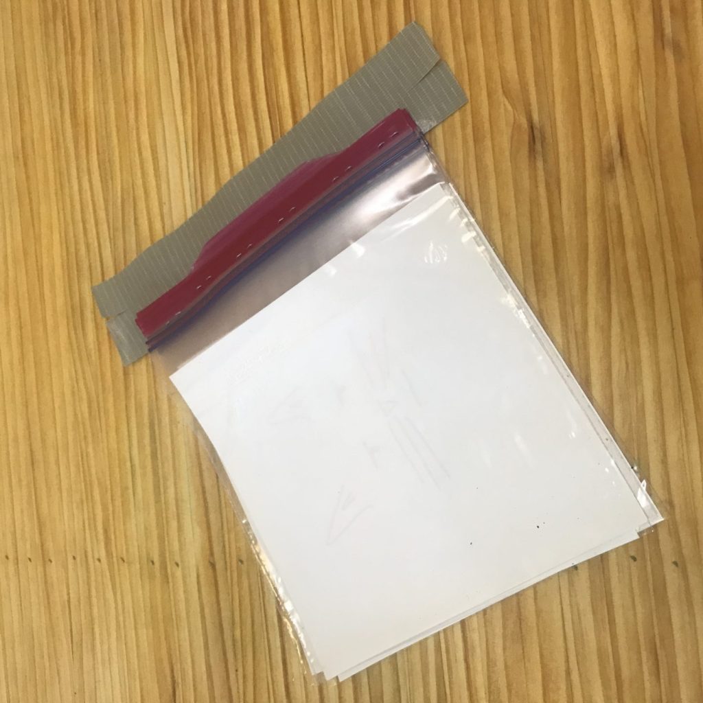 Now, slip each page into a freezer bag and zip the bags shut, as illustrated below.