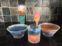 Creating two-tone blocks is easy. Freeze a bit of colored water, add more water of another color to the container, and pop it back in the freezer.