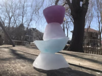 Here’s a tip for stacking ice blocks: sprinkle some salt on the lower block(s) before adding a block to the stack. The salt creates friction and helps the slippery cubes bond.
