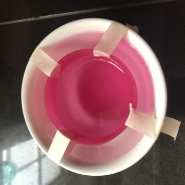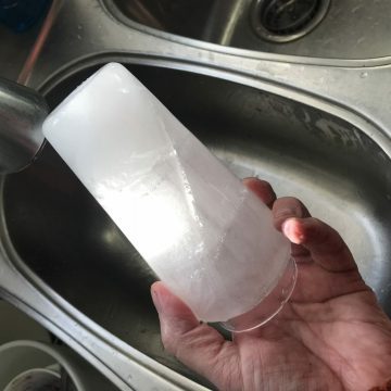 The only real challenge is positioning the inner glass. There are two reasons for this. first, you’ll want it as close as possible to the center of the outer glass to assure that the walls of your ice glass have an even thickness. In one of my experiments, I placed the inner glass to far to one side and at a bit of an angle. That resulted in one of the walls being too thin. It melted and vanished as soon as it was removed from the freezer.