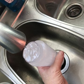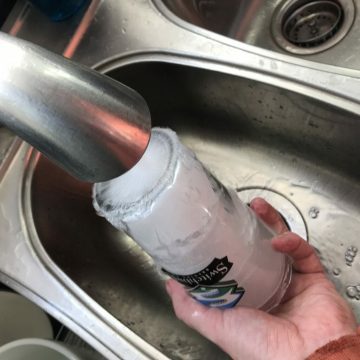 Once the inner glass is securely in position, add a bit of water if needed (it’ll expand a bit as it freezes, so don’t fill too full) Then pop it into the freezer for at least 4 hours.