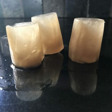 - Add Coloring. As the photos show, I made some of my experimental creations up using colored water. They look great, but can be quiet messy when they start melting. Whether that’s a good thing or bad thing is up to you. Another way to add a bit of color is to use tea. As you can see in the photo below, it creates ice with a bit of tint and is much less messy when it melts. I just poured warm tea into my mold and froze it.