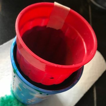 Selecting the glasses you use for your ice cube mold is pretty simple. You’ll need to consider two things: 1) will the cups slip apart after the water freezes and 2) are the cups different enough in size. The above photo shows poor selection on my part. The glasses were too close in size and it was a but of a pain to get the inner cup positioned. A smaller cup would have been easier. The photo below is an example of a glass I would have loved to use, but couldn’t because I could not have successfully removed the ice in one piece.