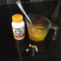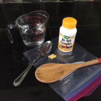 - B-50 comes in capsules and tablets. If you have tablets, place two of them in the plastic bag, close the bag, and use the wooden spoon to crush them into a fine powder. If you’ve got capsules, just pinch them open and pour the powder into the water as directed in the next step.