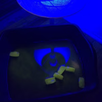 - Pop the cubes out of the tray, turn on the black light, turn off the other lights, and play.