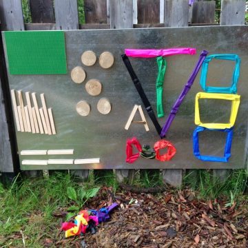 OK, one more idea I love but haven’t had a chance to try. Salvage an old car or truck door, remove the glass, and mount it for magnet play.