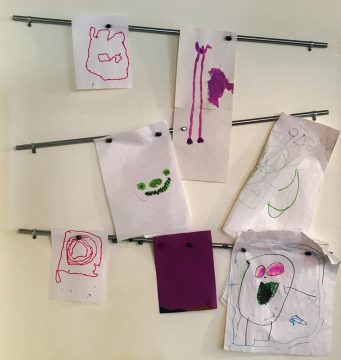 Here’s a couple magnet-and-metal based ideas we used for displaying pictures from granddaughter Rowan. The first one is simply lengths of metal conduit attached to a wall. The second image is the same basic idea using narrow strips of sheet metal. Both these ideas are inexpensive and easy to install.