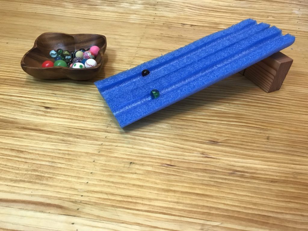 You can setup a pool noodle marble run ahead of time for kids to play with, but I recommend letting the kids be the boss of that process since it creates more opportunities for all the learning mentioned above.