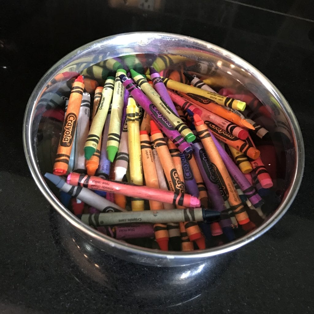 I’d like to toss out an idea: make this a water play/ sensory play experience. Just add the soon to be melted crayons to a water play table or sensory bin with some water and ask the kids to remove the paper. Give them a bowl to collect the naked crayons in and another for paper scraps. If you have time constraints, you can let the crayons soak over night and then let the kids strip them.