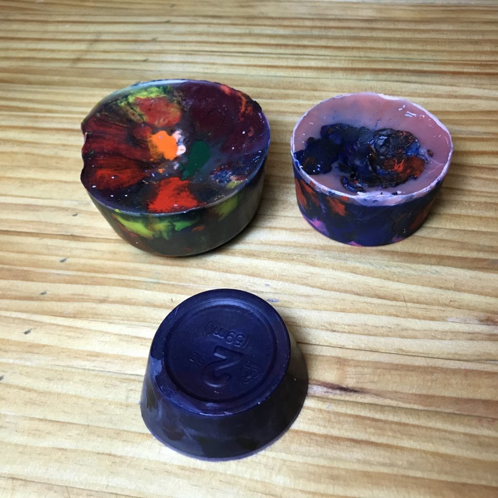 - This is related to number 5–if you want to create bigger crayon hunks, just add more crayon bits to the containers as the wax melts and space becomes available.