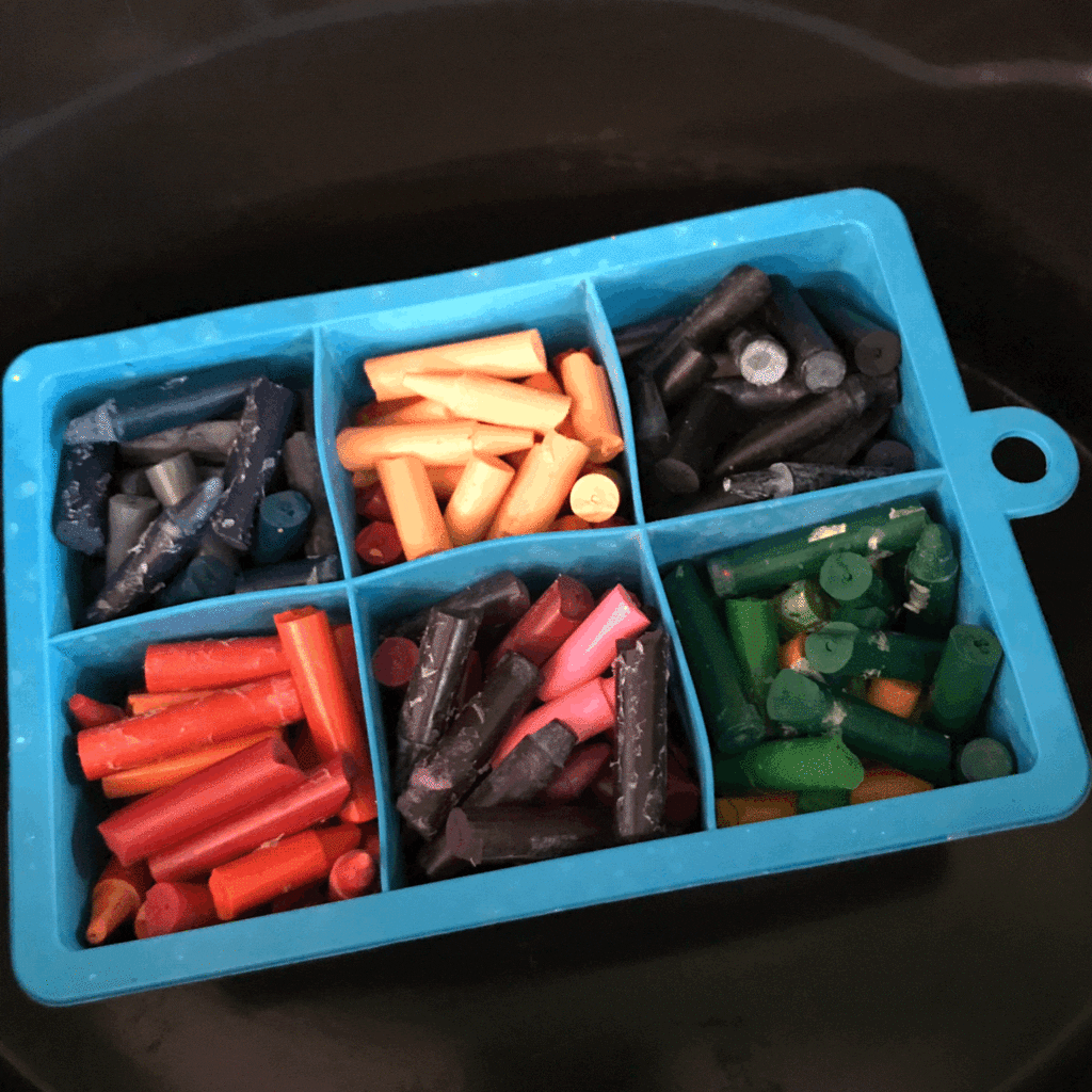 I recommend doing a test-drive without the kids to get an idea of how long the melting process will take with your slow cooker. During my first melt, I checked in every 10 minutes and found it took they tiny slow cooker I keep around for experiments took about 45 minutes to melt the crayons. Later, I found a larger unit did it in about 30 minutes. Doing some experimenting ahead of time will make the process a bit more predictable and enjoyable with kids.