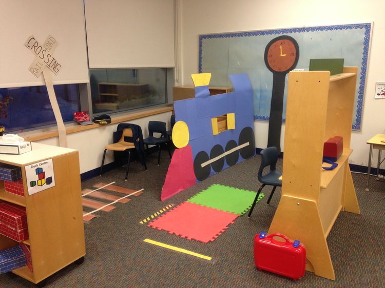 What sparked this setup? Why a train-themed setup? Is it inspired by Thomas The Tank Engine? Is it T week? Was the adult who set it up motivated by an Instagram image? Are 21st-century preschoolers into trains to the extent that they clamored for classroom transformation? If so, were they still interested in the topic by the time the transformation was complete?