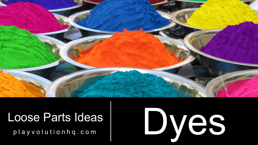 Dyes as loose parts encourage both STEM exploration and creativity. On the creative side, dyes can be used to color eggs, clothing, and various materials. STEM learning emerges when children measure and mix dyes, experimenting with ratios and combinations. Much of this exploration naturally blends creativity and STEM, fostering hands-on discovery.