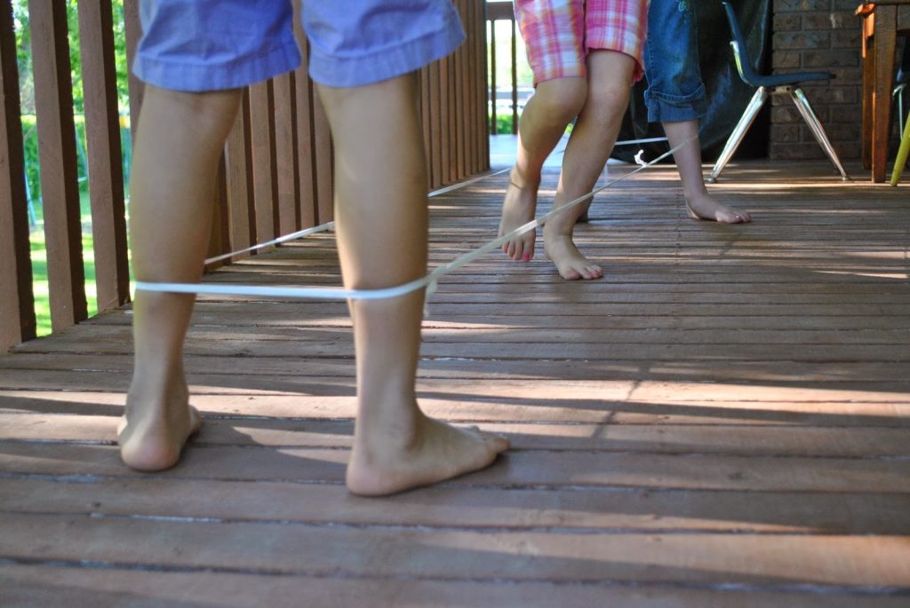 It can be used to play that jumping, twisting, tie yourself up in knots playground game that I never learned to play back in the day because it was a Girl Thing. Sadly, I doubt I’ll ever learn now because I could break a hip, and I’m not sure who’d teach me.