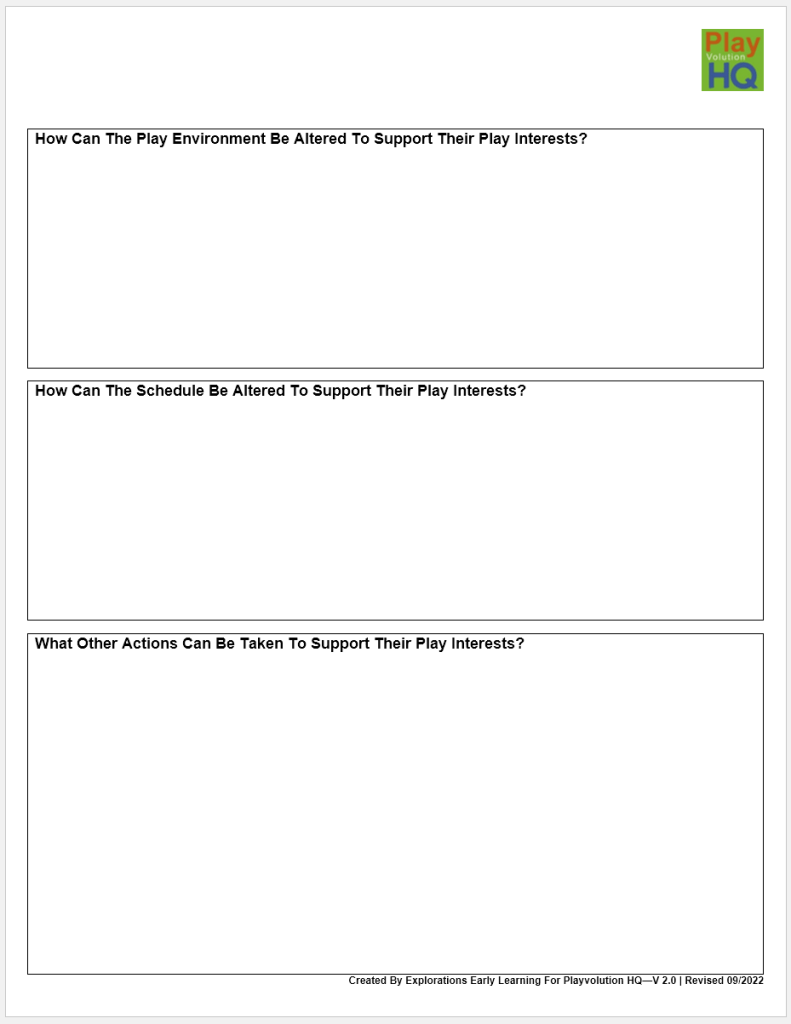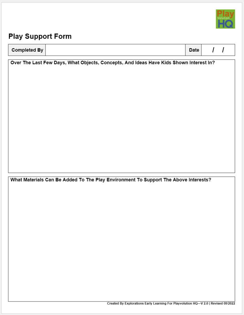 Use this Play Support Form to plan thoughtful changes to your child-led play environment.