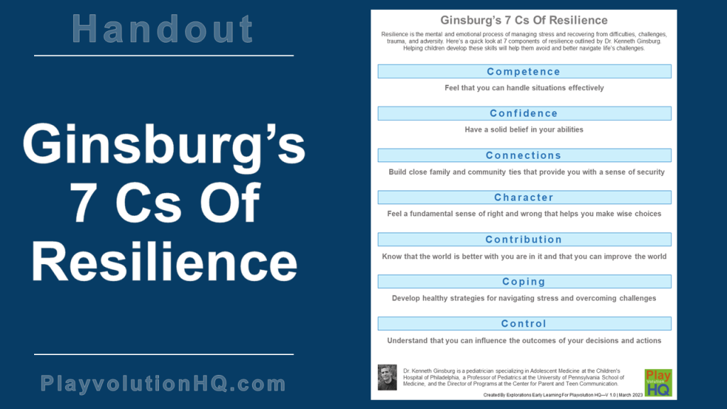 Resilience is the mental and emotional process of managing stress and recovering from difficulties, challenges, trauma, and adversity. Here’s a quick look at the 7 Cs of resilience outlined by Dr. Kenneth Ginsburg. Helping children develop these skills will help them avoid and better navigate life’s challenges.