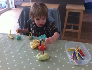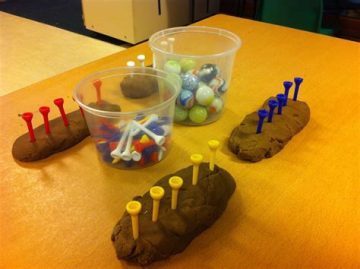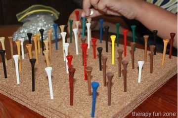 Since they are inexpensive and readily available, there’s no reason to have a basket of them available for sticking into play dough, hammering into mud, sticking onto pegboard, sorting by color, and more.