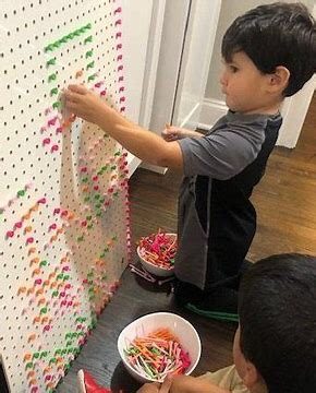 Golf tees are intriguing loose parts that ignite creativity, promote the development of small muscle strength and control, hone hand-eye coordination, offer opportunities for experimentation and construction, and more during children’s self-led play and exploration.