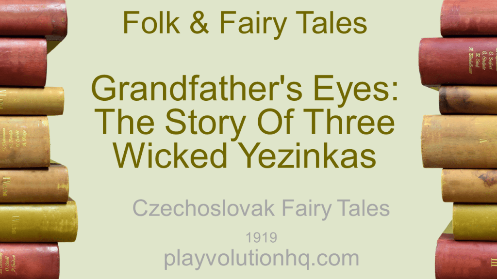 Now Yanechek knew that the Yezinkas were wicked witches who lived in a cave in the woods and went about in the guise of beautiful young women. If they met you they would greet you modestly and say something like “God bless you!” to make you think they were good and kind and then, once they had you in their power, they would put you to sleep and gouge out your eyes! Oh, yes, Yanechek knew about the Yezinkas.