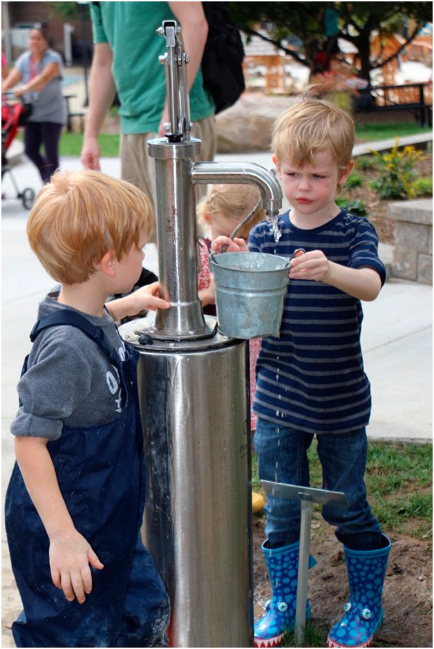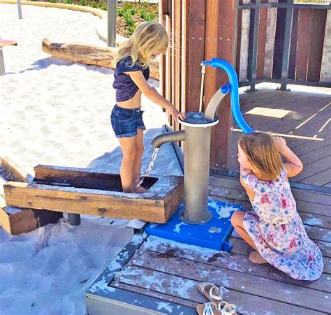 More examples below. I’ve seen many hand pumps on public playgrounds across Australia, usually near beaches. Public playground water play isn’t something I’ve stumbled upon much in the United States or Canada.