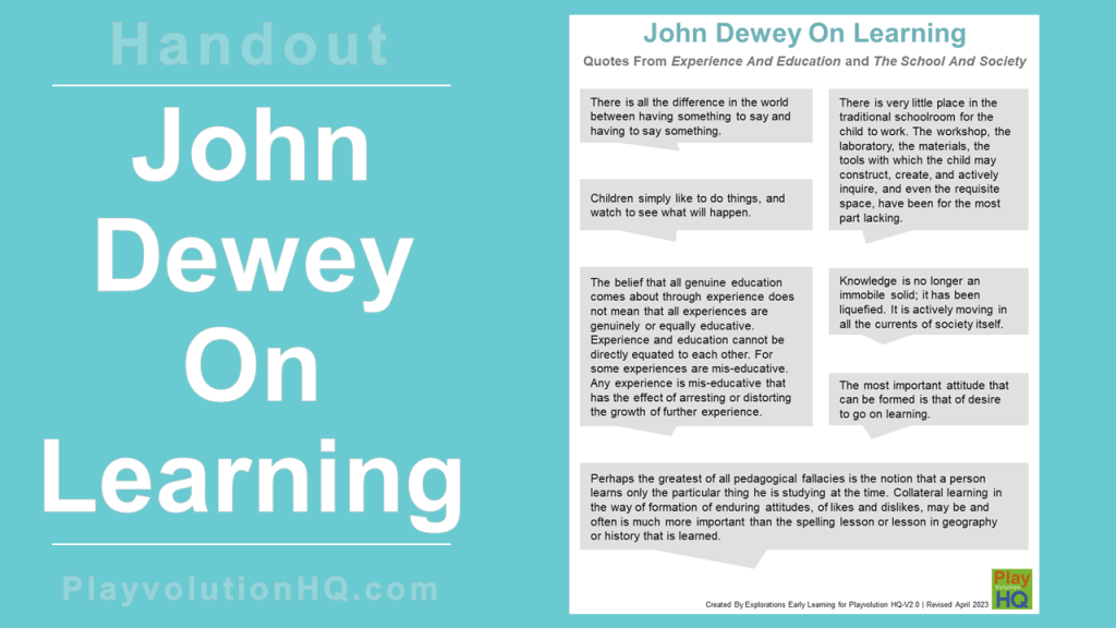Here’s a free PDF handout with quotes from John Dewey on learning. These quotes are from his books books Experience And Education and The School And Society.