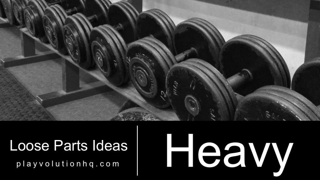 Creating a play environment where children can interact with the concept Heavy has many developmental benefits. It promotes physical development, cognitive growth, social skills, and emotional development. As children lift, move, and compare objects, they build a foundational understanding of scientific concepts like weight, balance, effort, and more through hands-on exploration. Playing with the idea of heft is also a chance to engage in heavy work.