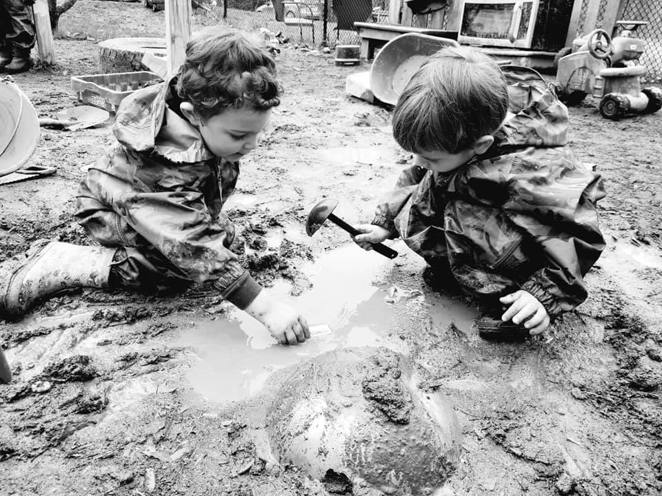 • We spend most of our time outside, and will likely be messy upon your arrival at the end of each day. This may include the sand pit and water table, mud, and art supplies so your child MAY NOT be perfectly clean when you arrive.