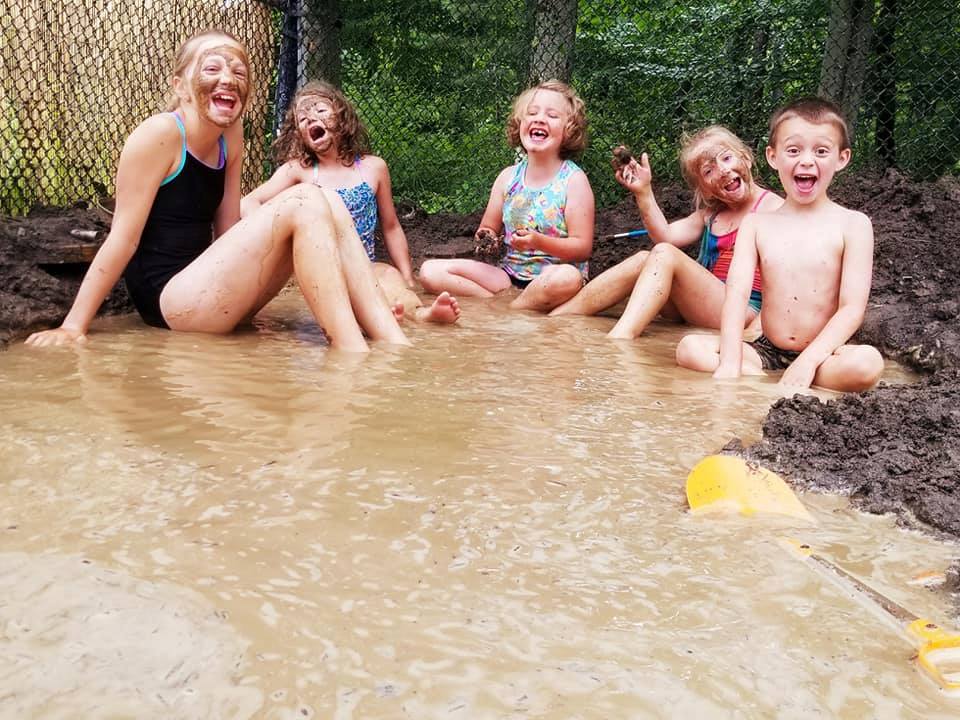 • Messy play includes, but is not limited to: dirt, mud, sand, goop, gak, oobleck, slime, flubber, water, paint, fingerpaint, playdough, shaving cream, clay, mulch, bug guts, and other art materials. Children are allowed freedom of expression and will often paint their bodies and nails. Although all of our art materials are washable and non toxic, sometimes they will still look “stained” and will need a good soak in a bathtub each evening.