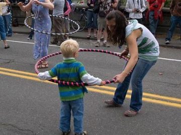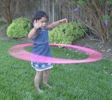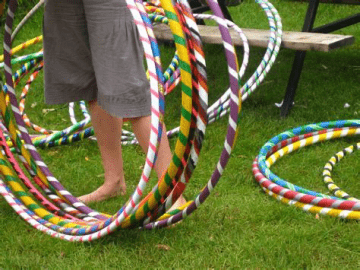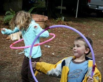 Hula-hoops encourage active play as children experiment with different ways to twirl, spin, roll, and toss them. Whether they’re mastering the skill of hula hooping or incorporating them into imaginative games, they provide endless opportunities for physical activity and fun. One day, the hoops may be used as bases in some kid-invented ball game. The next, they are time machine portals. The day after that they’re rolled down the slide to laughs and cheers.