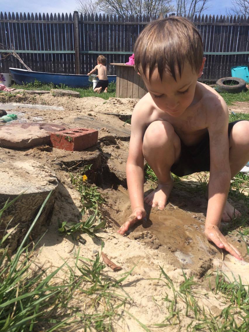 The flow had now become a trickle, but the water was still escaping. He had added bricks, smaller rocks, and packed sand in the cracks of it all. In the end, he never stopped the flow of water, Many adults would see this as a failure, some would even see this as an opening to “teach” him by doing it for him, asking him leading questions or just telling him he can’t stop the water.