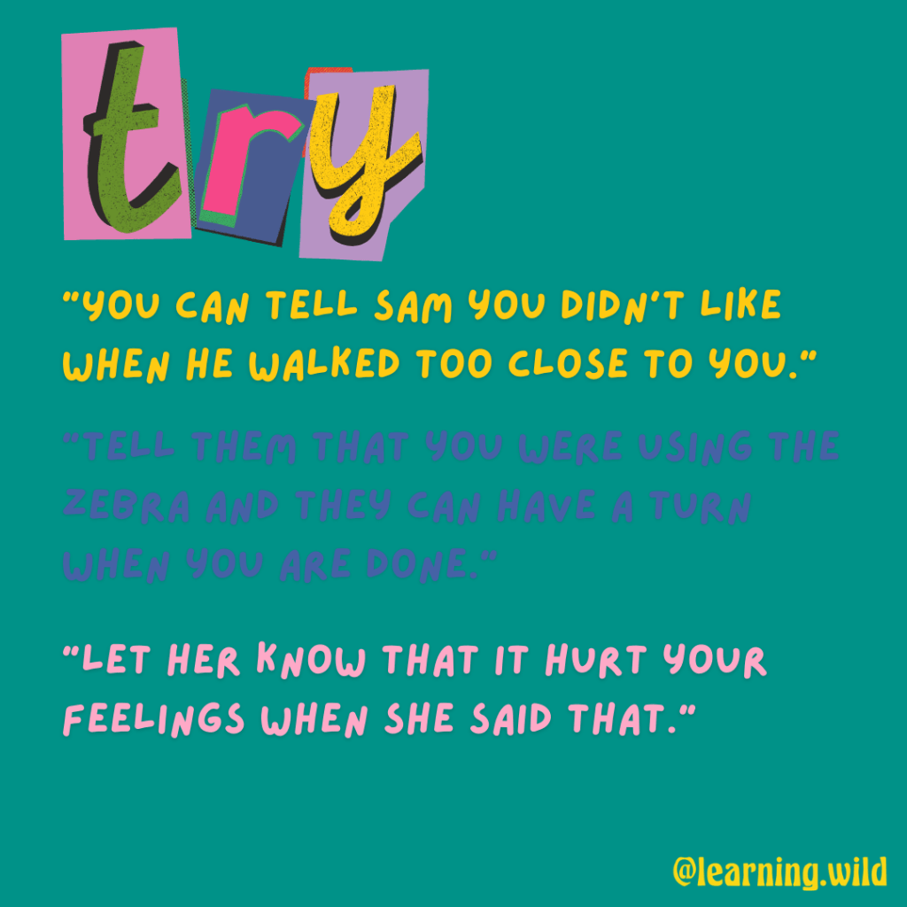 Step 2: SNAP – what are the exact words the child should say? “You can have a turn when I am all done.” “I didn’t like that”. “That made me sad”