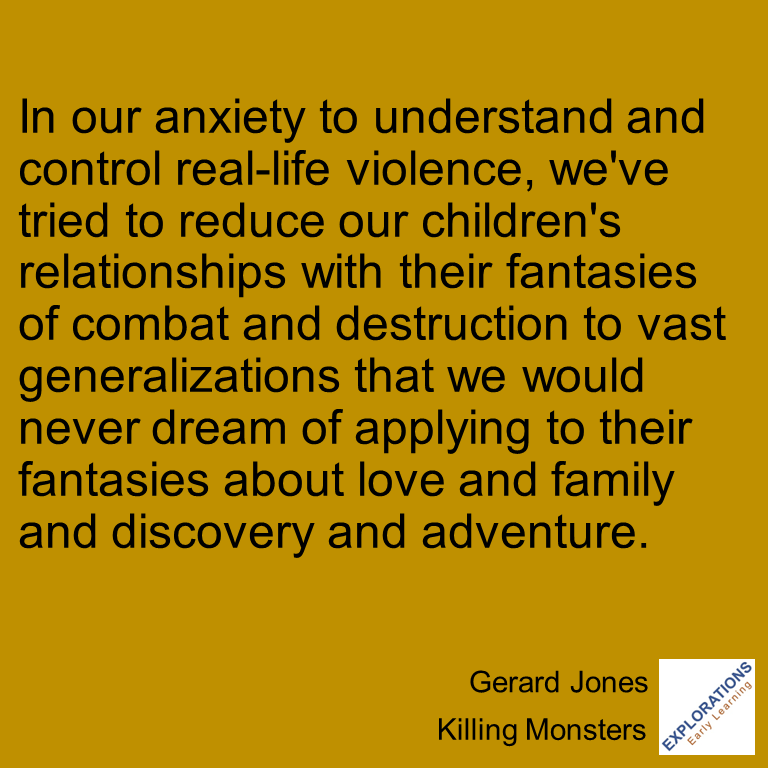 In our anxiety to understand and control real-life violence, we’ve tried to reduce our children’s relationships with their fantasies of combat and destruction to vast generalizations that we would never dream of applying to their fantasies about love and family and discovery and adventure.