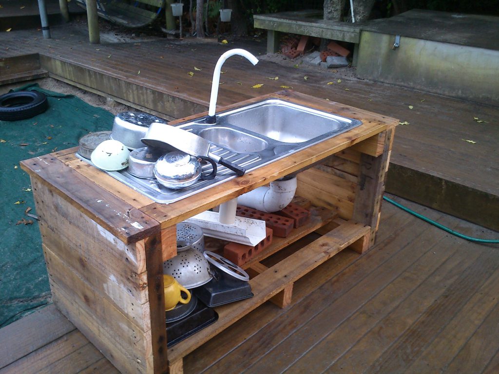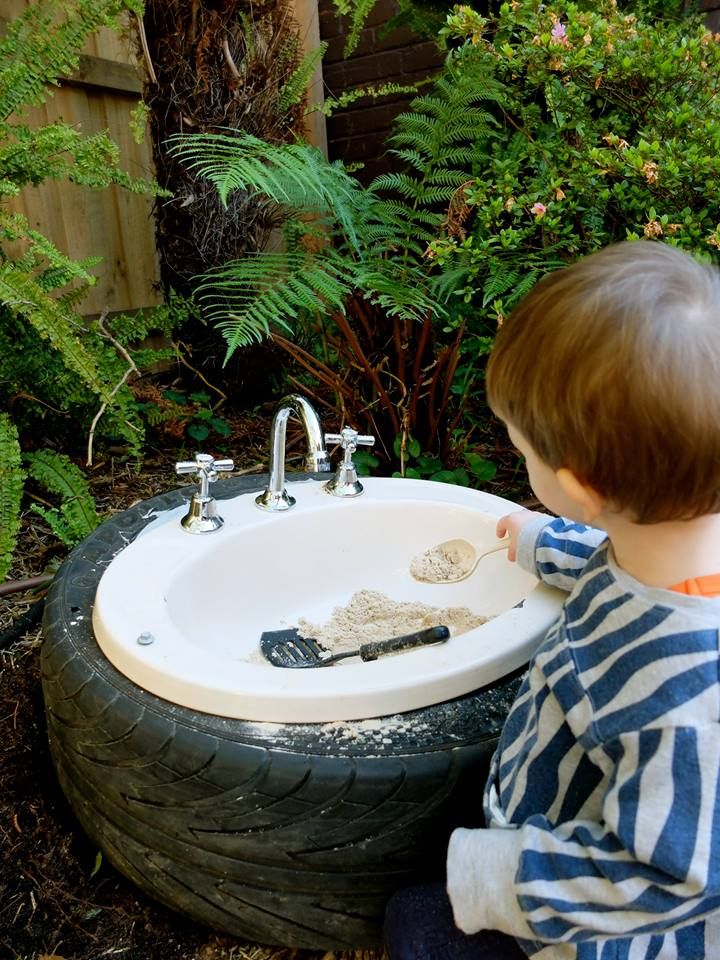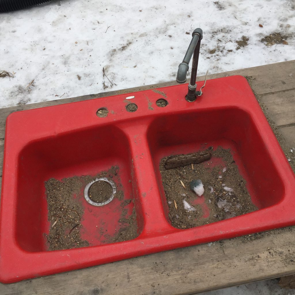 At first glance, kitchen sinks don’t seem to be the loosest of loose parts, since they just kind of sit there. But think the variable action that goes on round them when paired with things like water, mud, sponges, dish cloths, and imagination.