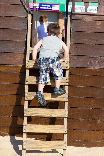 Plenty of children love to climb–some start before they can walk. These simple bits of technology are a great way to support this interest. Some worry that they are dangerous–and they can be when used inappropriately. Like many things in life, ladders become much less dangerous with proximity and experience. With appropriate adult supervision, children interested in ladder climbing can do it safely.